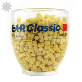 Refill bottle with 3M™ E-A-R™ Classic™ earplugs for use with the 3M™ One-Touch™ Dispenser, to give wearers easy access to earplugs. Contains 500 pairs of earplugs made from a soft energy absorbing foam providing excellent hearing protection and all day comfort. Ideal for use where noise is a problem, either in work or leisure activities.