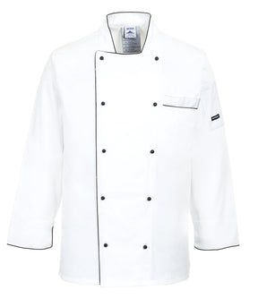 Executive Chef's Polycotton Jacket with Button Closure - White with Black