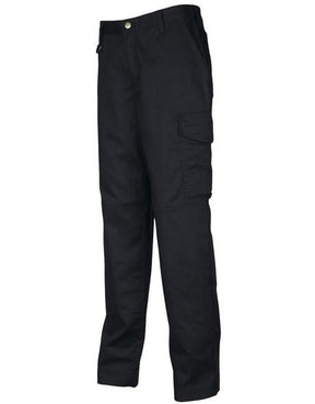 Waist pants without front pleat. Belt loops and D ring for keys, ID badge etc Interior knee pad pockets. 2 front side pockets (right pocket is zipped for safe storage). 2 rear pockets. Left leg pocket with flap and interior mobile telephone pocket. Right leg pocket has room for mobile telephone, pens, paper and folding rule. Loops under back pockets and leg pockets for attaching Inbags. Zipped fly with button fastening waistband. 65% polyester, 35% cotton fabric 245gsm fabric weight.